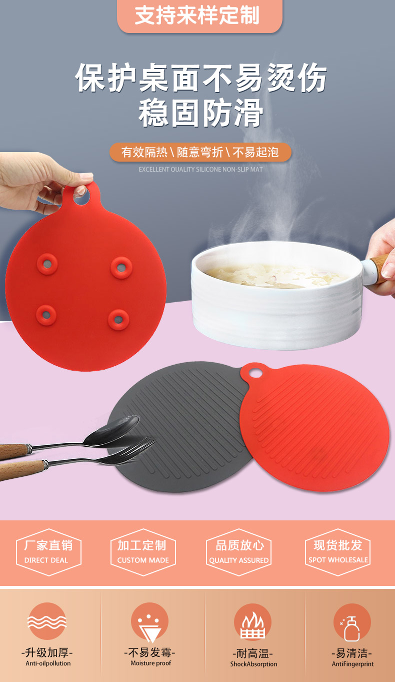 您的位置:首頁 > 產(chǎn)品中心 > 硅膠廚具用品 > 餐墊 > 硅膠隔熱墊,磁鐵隔熱墊
