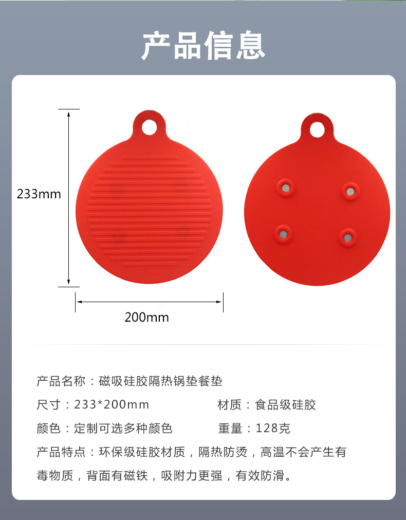【簡介】圓形磁鐵硅膠隔熱餐墊 防燙墊 廚房防水防滑鍋墊 硅膠餐墊