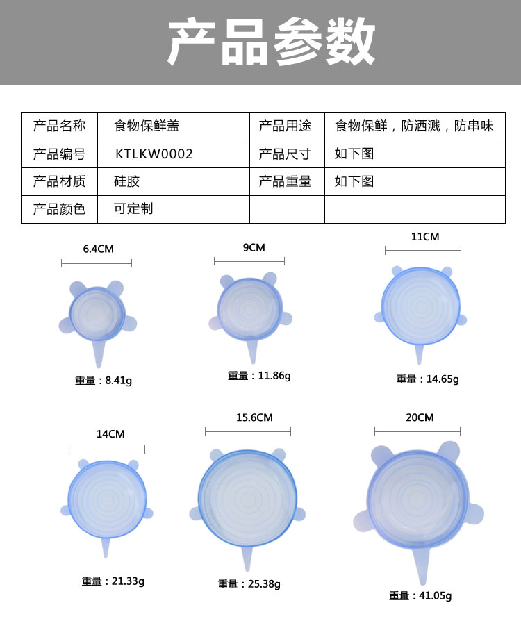 產(chǎn)品名稱:可拉伸多功能硅膠保鮮蓋六件套