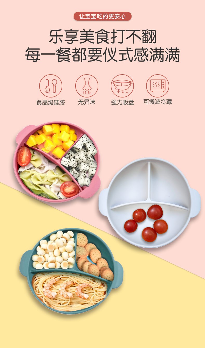 嬰兒吸盤式硅膠分格碗卡通學(xué)吃飯訓(xùn)餐具