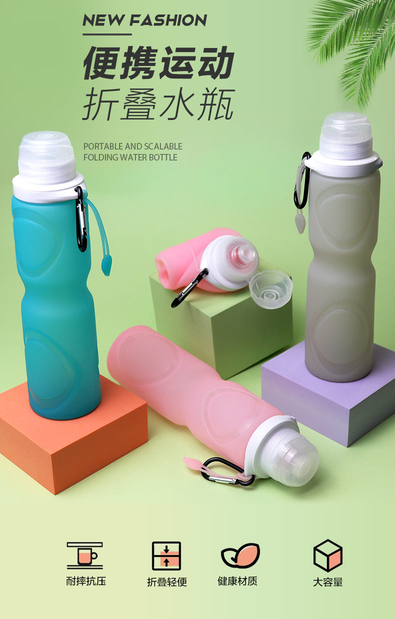 用途:瓶身柔軟,彈力好,可伸縮折疊,節(jié)省空間方便攜帶,抗摔
